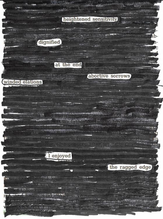 What I want to talk about today is ‘blackout poetry’, because blackout poetry is all about word arrangement. And no, blackout poetry is not poetry written after having a few too many at your local watering hole. Not at all. Blackout poetry is poetry that is created when a poet takes an existing piece of text and covers, or ‘blacks out’ most of the source text, leaving a smattering of words exposed on the page to form a poem.